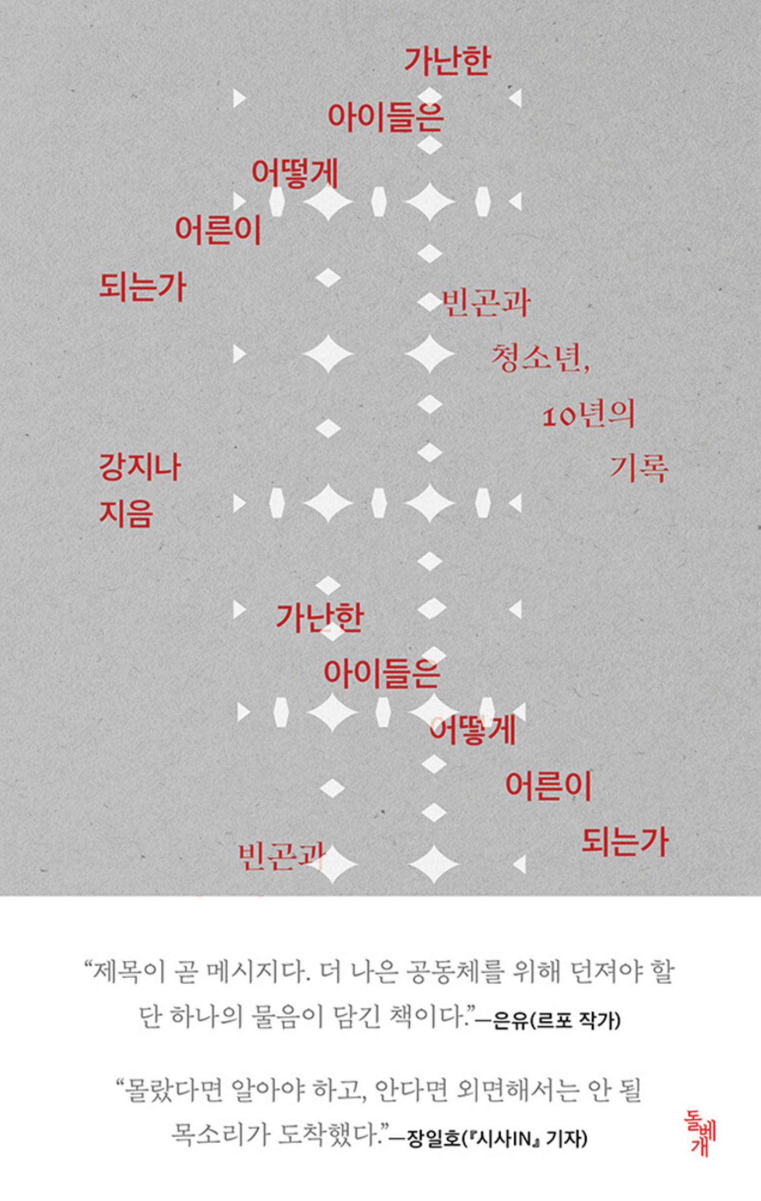 <가난한 아이들은 어떻게 어른이 되는가>는 빈곤의 원인과 영향을 청소년의 삶에 맞춰 밀착 분석한다. 어려움을 겪는 아이들의 인터뷰가 상세히 실리고 그 뒤엔 이러한 상황이 발생할 수밖에 없는 원인이 학술적 차원에서 이뤄진다. 이 균형이 가난한 삶의 이야기를 단순한 구경거리로 전락하는 걸 막아준다.